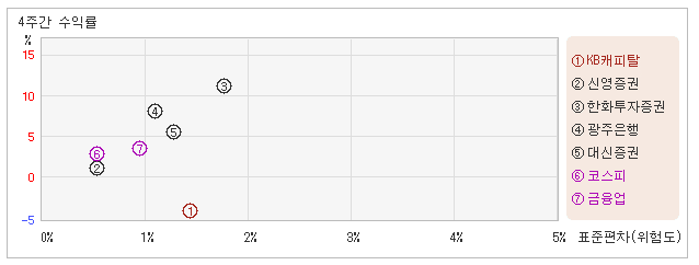 | KB캐피탈 | 1.4% | -4.2% | -3.0 |