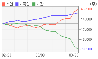 | 외국인/개인 순매수, 기관은 순매도(한달누적) 기관이 6일연속 주식을 팔고 있는 반면 외국인은 4일연속 주식을 사고 있다. 4주간을 기준으로 보면 외국인이 초반에 동종목을 순매수한 이후에 기세를 이어가며 33,836주를 순매수했고, 개인들도 매수반전의 모습을 보이며 45,454주를 순매수했다. 하지만 기관은 매도 관점으로 접근하면서 79,290주를 순매도했다. |