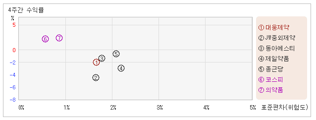 | 대웅제약 | 1.6% | -2.6% | -1.6 |