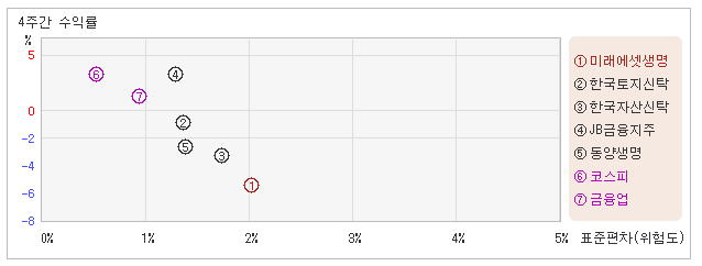 | 미래에셋생명 | 2.0% | -6.8% | -3.4 |