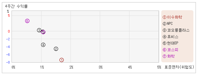 | 이수화학 | 코오롱플라스틱 | 현대EP | 휴비스 | NPC | |