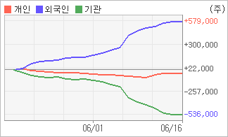 | 기관과 개인은 순매도, 외국인은 순매수(한달누적) 5월18일부터 외국인들이 21거래일 연속 순매수 행진을 벌이고 있다. 4주간을 기준으로 보면 외국인이 초반에 동종목을 순매수한 이후에 기세를 이어가며 578,726주를 순매수한 반면, 기관은 매도 관점으로 접근하면서 535,167주를 순매도했고, 개인들도 초반에 동종목을 순매도한 이후에 근래에는 순매도량을 줄이면서 43,559주를 순매도한 것으로 집계됐다. |