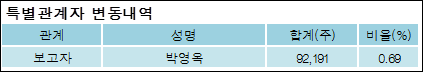 최대주주와 특수관계자의 지분 변동은 주가에 영향을 주는 요인이다. 특히 보유비율을 지속적으로 늘리거나 줄일 경우, 해당종목 투자시 유의할 필요가 있다.