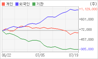 | 기관과 개인은 순매도, 외국인은 순매수(한달누적) 전일 외국인과 기관이 각각 9,132주, 15,284주를 순매수 했다. 4주간을 기준으로 보면 외국인이 초반에 동종목을 순매수한 이후에 기세를 이어가며 1,085,072주를 순매수한 반면, 기관은 매도 관점으로 접근하면서 969,550주를 순매도했고, 개인들도 매도 우위로 반전되면서 115,522주를 순매도한 것으로 집계됐다. |