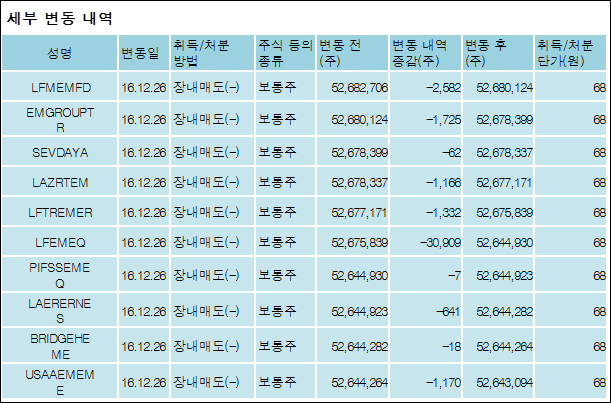 최대주주와 특수관계자의 지분 변동은 주가에 영향을 주는 요인이다. 특히 보유비율을 지속적으로 늘리거나 줄일 경우, 해당종목 투자시 유의할 필요가 있다.