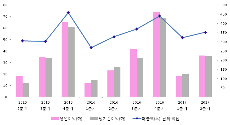 08월 03일 안랩(053800)의 2017년 2분기 개별 잠정 실적이 발표됐다. 전년 같은 기간 대비해서 매출액, 영업이익, 당기순이익 모두 증가하였다. 328억원이었던 매출액은 7% 증가하여 352억원을 기록했다. 영업이익은 57% 상승하여 36억원이고, 당기순이익은 35.6억원으로 발표됐다.