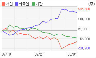 | 기관과 개인은 순매도, 외국인은 순매수(한달누적) 전일까지 외국인이 3일 연속, 기관이 5일 연속 각각 동종목을 순매도 했다. 4주간을 기준으로 보면 외국인이 초반에 동종목을 순매수한 이후에 기세를 이어가며 27,341주를 순매수한 반면, 기관은 매도 관점으로 접근하면서 10,792주를 순매도했고, 개인들도 매도쪽으로 방향을 잡으면서 16,549주를 순매도한 것으로 집계됐다. |