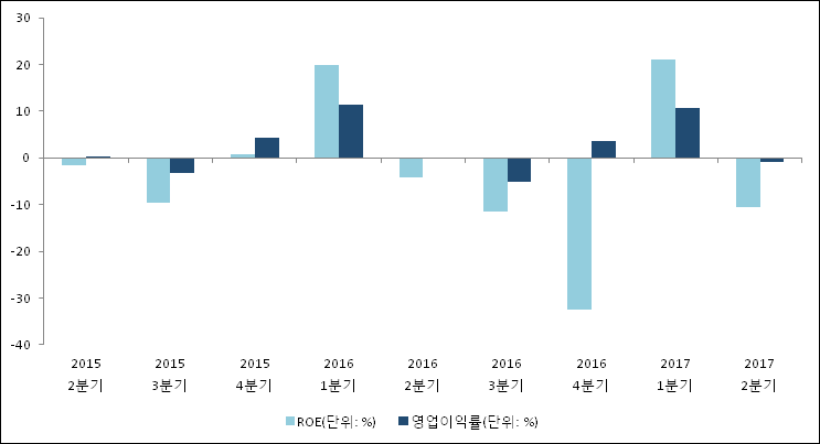 이번분기 기준으로 추정되는 한국가스공사의 자기자본이익률(ROE)은 -10.6%로 나타났다. 전년 동기인 2016년 2분기 ROE는 -4.1%로 이번 분기에 6.5%p 하락했다. 한편 동종목의영업이익률은 -0.8%이다. 지난해 동기 영업이익률은 -0.2%로 이번 2분기에 0.6%p 하락했다.