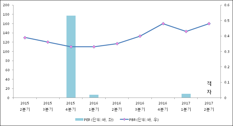 주가가 1주당 순자산의 몇배인지 알려주는 주가순자산비율인 PBR은 0.48배이다. 지난해 동기 PBR은 0.35배로 이번 2분기 PBR이 상승했다.