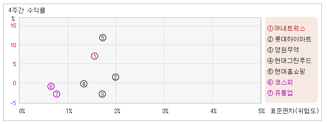 | SK네트웍스 | 현대홈쇼핑 | 현대그린푸드 | 롯데하이마트 | 영원무역 | |