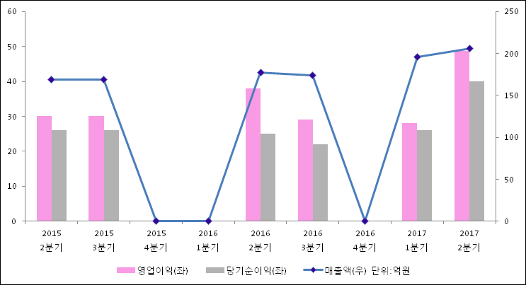 08월 10일 사람인에이치알(143240)의 2017년 2분기 연결 확정 실적이 발표됐다. 매출액, 영업이익, 당기순이익 모두 작년 같은 기간 대비 상승하였다. 매출액은 15.92%, 상승한 206억원으로 발표되었다. 영업이익과 당기순이익은 각각 29.7%, 58.34% 증가하여 48.6억원, 40억원으로 기록 되었다.