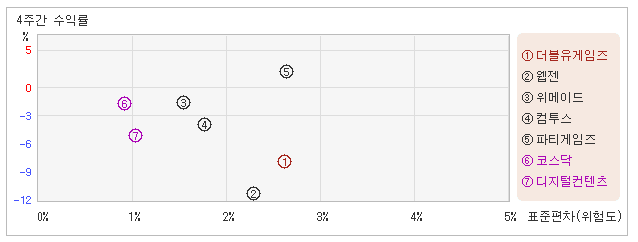 | 위메이드 | 1.5% | -2.1% | -1.3 |
