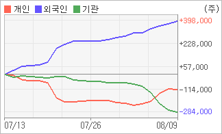 | 기관과 개인은 순매도, 외국인은 순매수(한달누적) 기관이 14일연속 주식을 팔고 있는 반면 외국인은 9일연속 주식을 사고 있다. 4주간을 기준으로 보면 외국인이 초반에 동종목을 순매수한 이후에 기세를 이어가며 397,547주를 순매수한 반면, 기관은 매도 관점으로 접근하면서 283,896주를 순매도했고, 개인들도 초반에 동종목을 순매도한 이후에 근래에는 순매도량을 줄이면서 113,651주를 순매도한 것으로 집계됐다. |