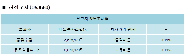 다음은 현진소재의 지분 변동 내역과 보유 내역이다.