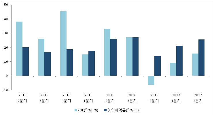 이번분기 기준으로 추정되는 지스마트글로벌의 자기자본이익률(ROE)은 15.6%로 나타났다. 전년 동기인 2016년 2분기 ROE는 33%로 이번 분기에 17.4%p 하락했다. 한편 동종목의영업이익률은 25.5%이다. 지난해 동기 영업이익률은 25.9%로 이번 분기와 비슷한 수치이다.