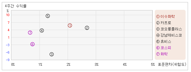 | 이수화학 | 2.0% | 5.4% | 2.6 |
