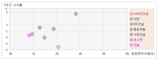 | 이테크건설 | 2.0% | -8.9% | -4.4 |