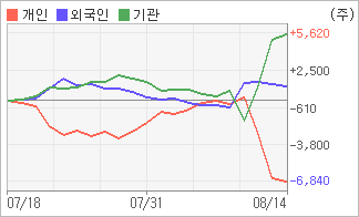 | 외국인/기관 순매수, 개인은 순매도(한달누적) 기관이 3일연속 순매수를 보이고 있는 반면에 외국인은 2일연속 순매도를 보이고 있다. 4주간을 기준으로 보면 외국인이 초반에 동종목을 순매수한 이후에 기세를 이어가며 1,225주를 순매수했고, 기관도 방향성있는 매매를 하면서 5,611주를 순매수했다. 반면 개인들은 매도쪽으로 방향을 잡으면서 6,836주를 순매도한 것으로 나타났다. |