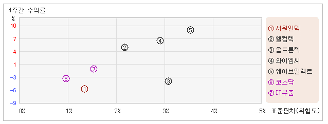 | 서원인텍 | 1.3% | -6.5% | -4.9 |