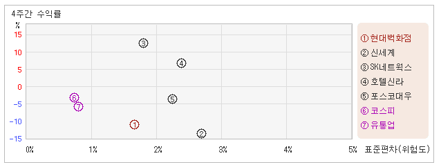 | 현대백화점 | 1.6% | -11.0% | -6.8 |