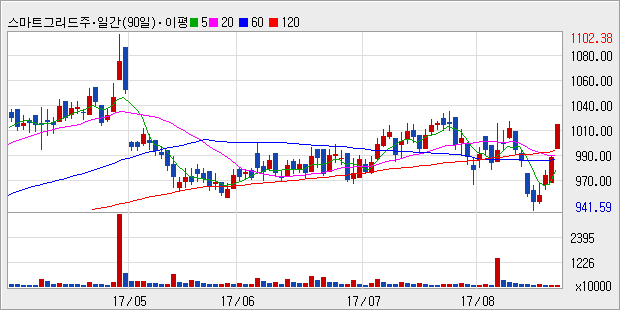 스마트그리드주(지수:1021.69 전일비:▲3.29%)