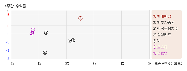 | 한국금융지주 | 2.2% | -6.8% | -3.0 |