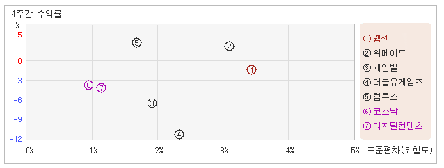 | 웹젠 | 3.4% | -1.8% | -0.5 |