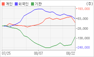 | 외국인/개인 순매수, 기관은 순매도(한달누적) 기관이 3일연속 순매수를 보이고 있는 반면에 외국인은 3일연속 순매도를 보이고 있다. 4주간을 기준으로 보면 외국인이 매수 우위를 유지하면서 84,217주를 순매수했고, 개인들도 순매수량을 늘리며 40,338주를 순매수했다. 하지만 기관은 매도 우위를 보이면서 124,555주를 순매도했다. |
