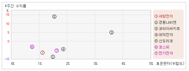 | 세방전지 | 1.1% | -6.6% | -5.9 |