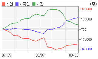 | 외국인/기관 순매수, 개인은 순매도(한달누적) 기관이 7일연속 주식을 팔고 있는 반면 외국인은 7일연속 주식을 사고 있다. 4주간을 기준으로 보면 외국인이 매매관점을 매도에서 매수로 전환하면서 18,197주를 순매수했고, 기관도 초반에 동종목을 순매수한 이후에 최근에는 순매수량이 줄어들고 있음에도 불구하고 6,428주를 순매수했다. 반면 개인들은 매도쪽으로 방향을 잡으면서 24,625주를 순매도한 것으로 나타났다. |