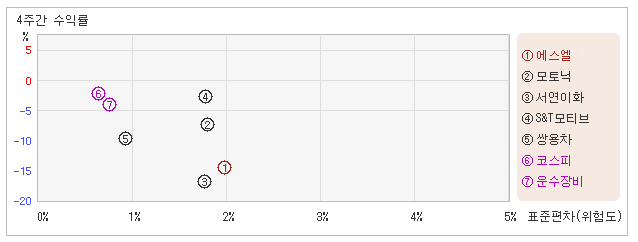 | 에스엘 | 쌍용차 | S&T모티브 | 서연이화 | 모토닉 | |