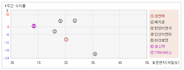 | 코엔텍 | 2.0% | -10.6% | -5.2 |