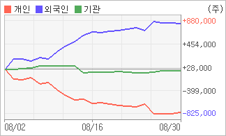 | 기관과 개인은 순매도, 외국인은 순매수(한달누적) 전일까지 외국인이 3일 연속, 기관이 2일 연속 각각 동종목을 순매도 했다. 4주간을 기준으로 보면 외국인이 초반에 동종목을 순매수한 이후에 기세를 이어가며 830,481주를 순매수한 반면, 기관은 매도 우위를 보이면서 34,343주를 순매도했고, 개인들도 매도쪽으로 방향을 잡으면서 796,138주를 순매도한 것으로 집계됐다. |