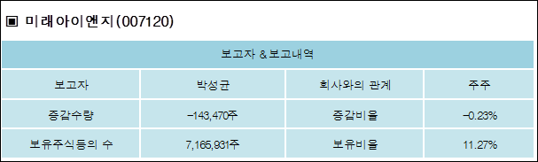 다음은 미래아이앤지의 지분 변동 내역과 보유 내역이다.