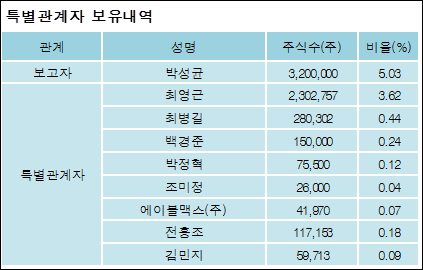 최대주주와 특수관계자의 지분 변동은 주가에 영향을 주는 요인이다. 특히 보유비율을 지속적으로 늘리거나 줄일 경우, 해당종목 투자시 유의할 필요가 있다.