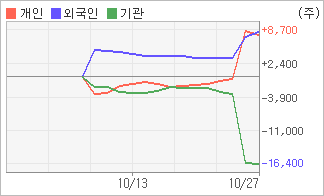 | 외국인/개인 순매수, 기관은 순매도(한달누적) 기관이 5일연속 주식을 팔고 있는 반면 외국인은 2일연속 주식을 사고 있다. 4주간을 기준으로 보면 외국인이 초반에 동종목을 순매수한 이후에 기세를 이어가며 8,469주를 순매수했고, 개인들도 매수반전의 모습을 보이며 7,846주를 순매수했다. 하지만 기관은 매도 관점으로 접근하면서 16,315주를 순매도했다. |