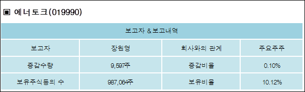다음은 에너토크의 지분 변동 내역과 보유 내역이다.