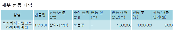 에이원앤(035290)은 01일 주주 주식회사코링크프라이빗에쿼티의 보유주식이 증가되었다고 발표했다. 이는 직전 보고일보다 1,000,000주 증가하여 지분율은 12.5%로 상승했다. 이번 보고 사유는 경영권양수도계약에 따른 본인장외매수취득(+)로 알려졌다.