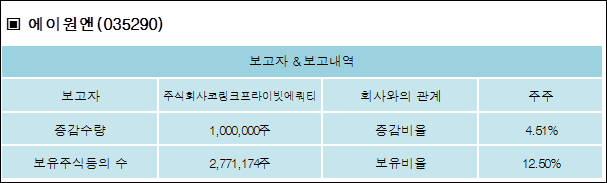 다음은 에이원앤의 지분 변동 내역과 보유 내역이다.