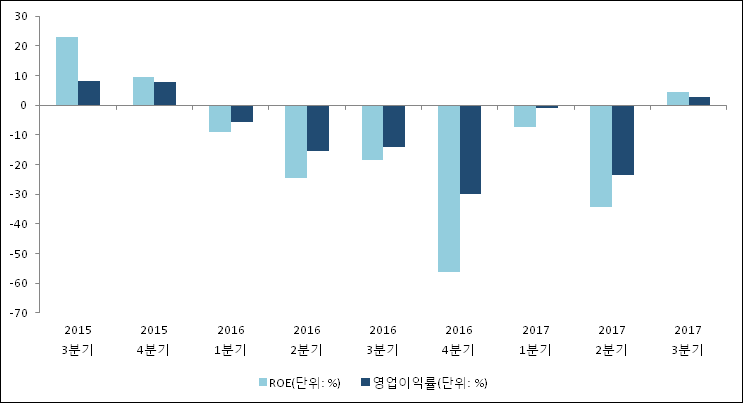 이번분기 기준으로 추정되는 알비케이이엠디의 자기자본이익률(ROE)은 4.3%로 나타났다. 이는 최근 일년과 비교했을 때 급등한 수치이다. 전년 동기인 2016년 3분기 ROE는 -18.5%로 이번 분기에 22.8%p 상승했다. 한편 동종목의영업이익률은 2.6%이다. 이는 최근 일년과 비교했을 때 급등하였다. 3분기 매출액, 영업이익 모두 상승했는데, 영업이익의 상승폭이 더 컸기 때문에 영업이익률이 상승했다. 지난해 동기 영업이익률은 -14.2%로 이번 3분기가 16.8%p 상승했다.