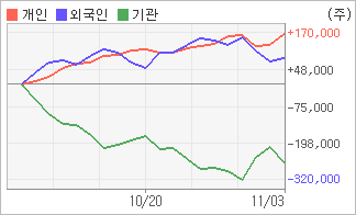 | 외국인/개인 순매수, 기관은 순매도(한달누적) 전일 외국인이 10,875주를 사들인 반면 기관은 48,993주를 팔았다. 4주간을 기준으로 보면 외국인이 매수 우위를 유지하면서 88,738주를 순매수했고, 개인들도 순매수량을 늘리며 169,782주를 순매수했다. 하지만 기관은 매도 관점으로 접근하면서 258,520주를 순매도했다. |