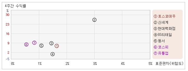 | 포스코대우 | 현대백화점 | 동서 | GS리테일 | 신세계 | |