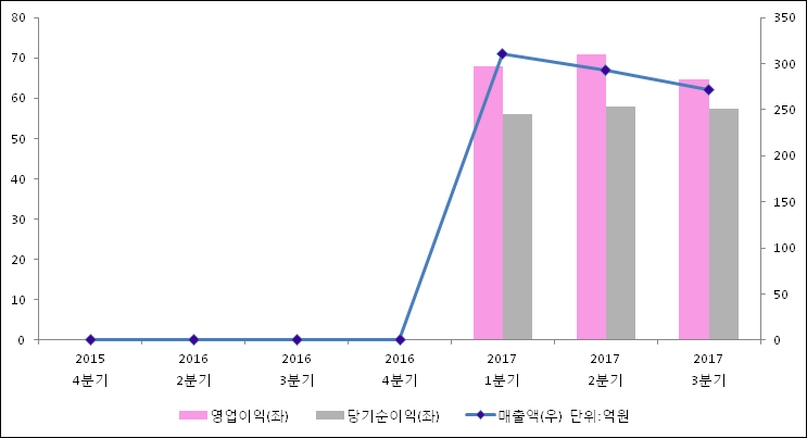 11월 17일 뉴파워프라즈마(144960)의 2017년 3분기 연결 확정 실적이 발표됐다. 매출액, 영업이익, 당기순이익 모두 작년 동기 대비 상승하였다. 매출액은 35.92%, 상승한 272억원으로 발표되었다. 영업이익과 당기순이익은 각각 25.88%, 34.7% 증가하여 64.6억원, 57.3억원으로 기록 되었다.