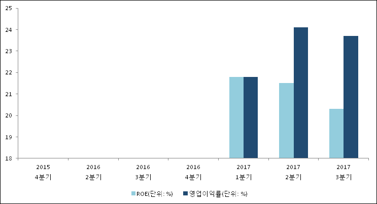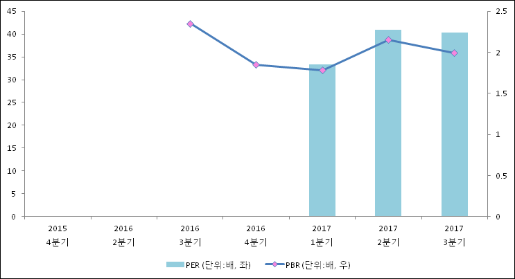 주가가 1주당 수익의 몇배가 되는지 나타내는 주가수익비율(PER)은 40.2배로 나타났다. 직전분기 PER은 41배이다.