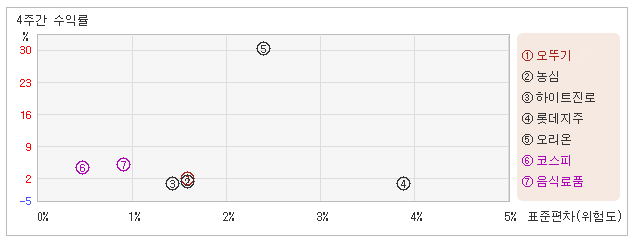 | 오뚜기 | 하이트진로 | 롯데지주 | 오리온 | 농심 | |