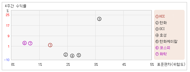 | 한화케미칼 | 2.4% | -7.2% | -2.9 |