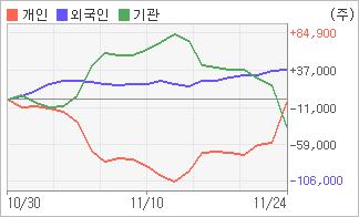 | 기관과 개인은 순매도, 외국인은 순매수(한달누적) 기관이 3일연속 주식을 팔고 있는 반면 외국인은 2일연속 주식을 사고 있다. 4주간을 기준으로 보면 외국인이 초반에 동종목을 순매수한 이후에 기세를 이어가며 39,212주를 순매수한 반면, 기관은 순매수에서 순매도로 반전되면서 34,377주를 순매도했고, 개인들도 초반에 동종목을 순매도한 이후에 근래에는 순매도량을 줄이면서 4,835주를 순매도한 것으로 집계됐다. |