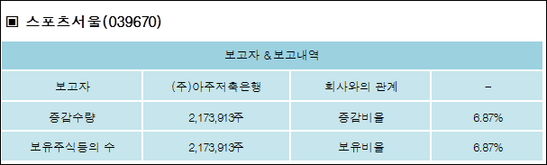 다음은 스포츠서울의 지분 변동 내역과 보유 내역이다.