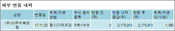 스포츠서울(039670)은 27일 - (주)아주저축은행의 보유주식이 증가되었다고 발표했다. 이는 직전 보고일보다 2,173,913주 증가하여 지분율은 6.87%로 상승했다. 이번 보고 사유는 전환가조정에 따른 주식등보유지분5%초과로 알려졌다.