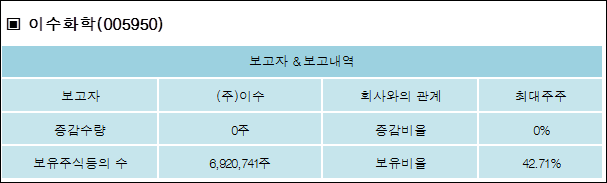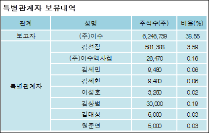 다음은 이수화학의 지분 변동 내역과 보유 내역이다.